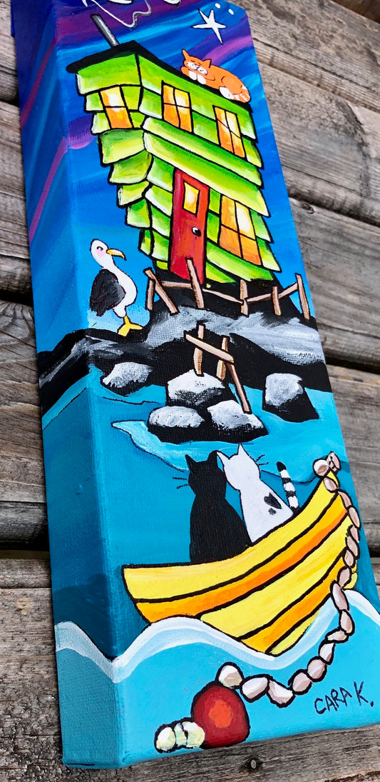 (SOLD) On a Quiet Night, While the Fish Swan By, The Cat on the Hill Sang Lullaby's, The Chimney Puffed Smoke While the Stars Twinkled High and the Red Quilt Stayed Out = Nan Hoped It Would Dry