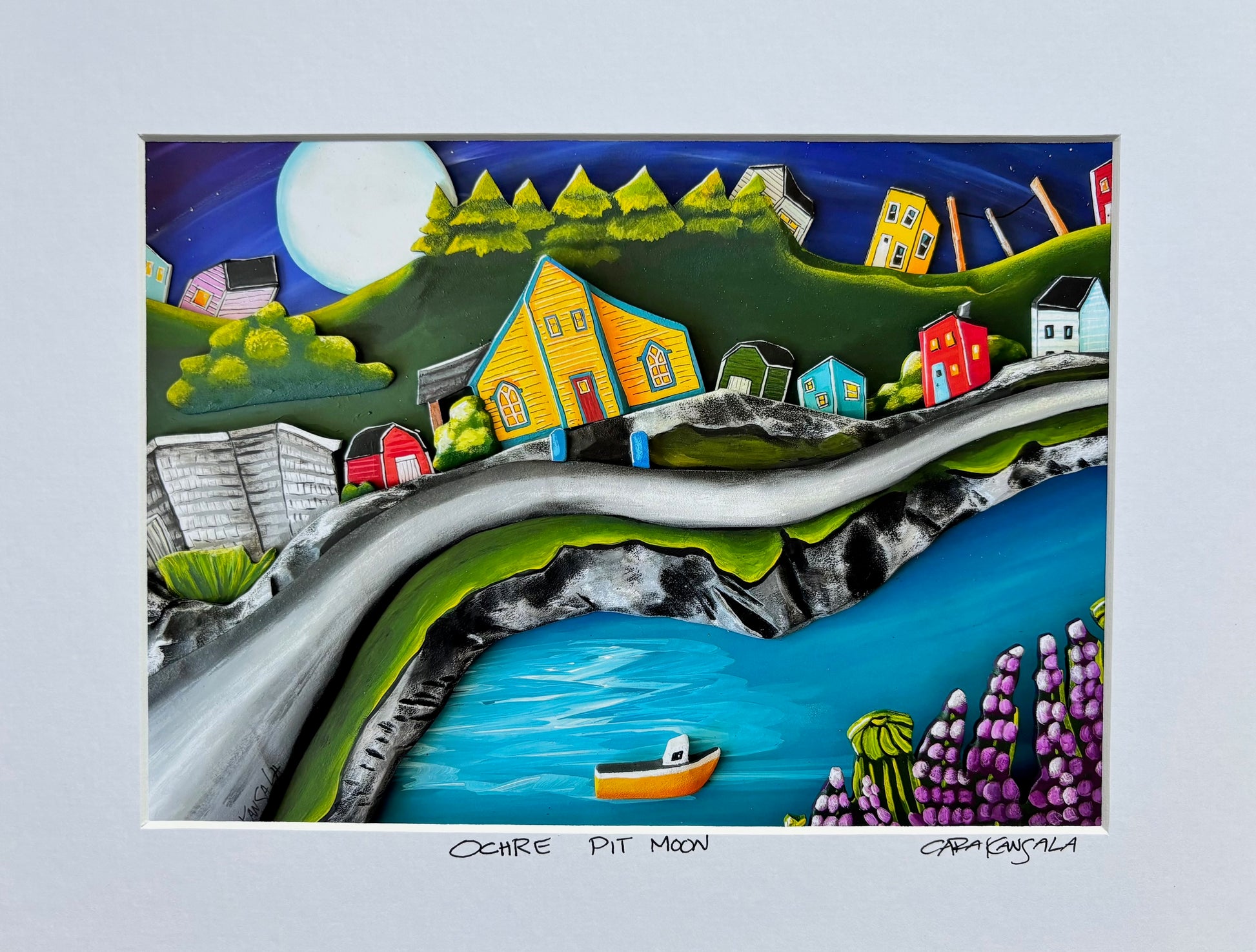 The piece can be framed in a 14" x 11" frame or displayed in the mat.