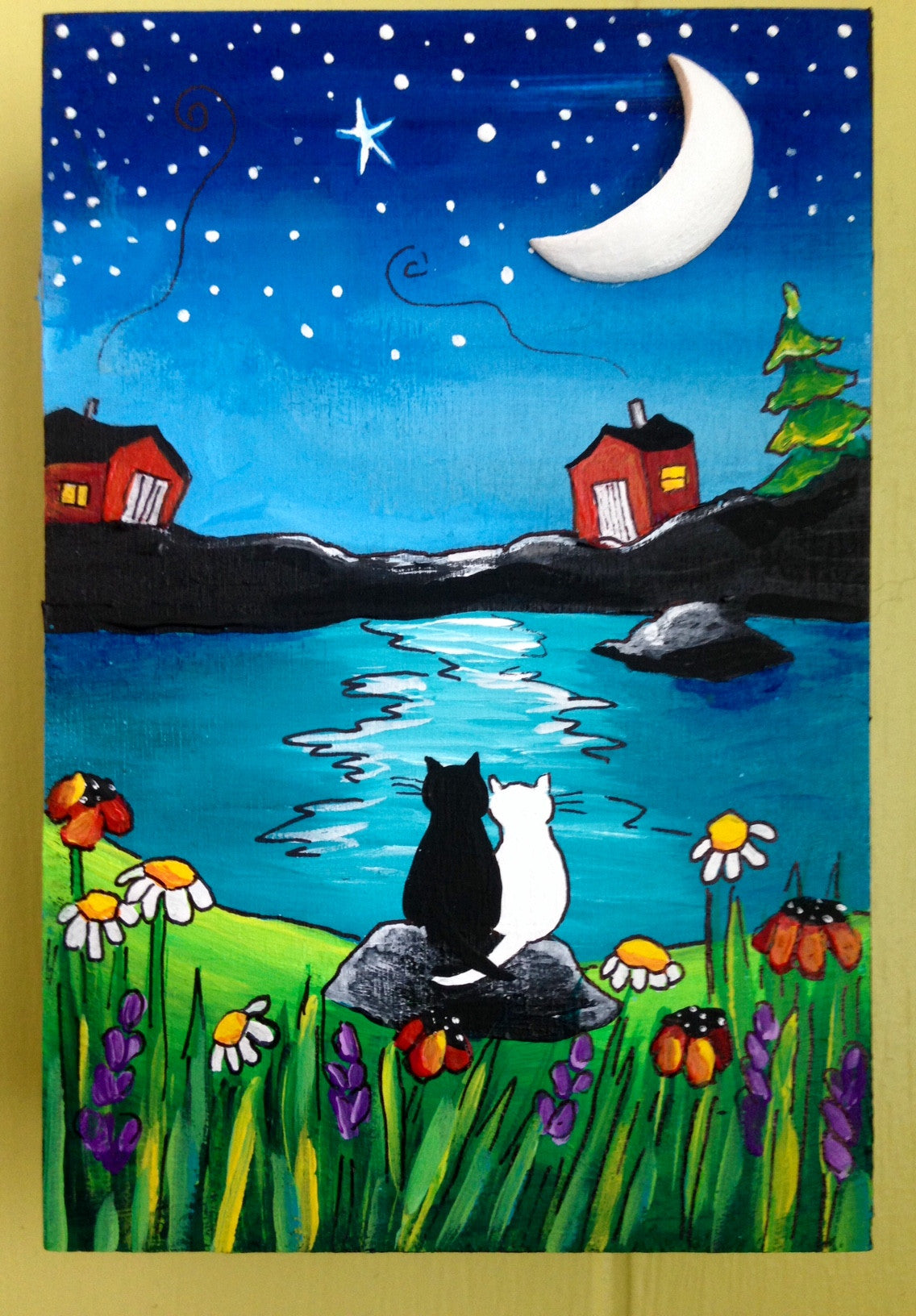Hand-painted acrylic on wooden canvas, black sides